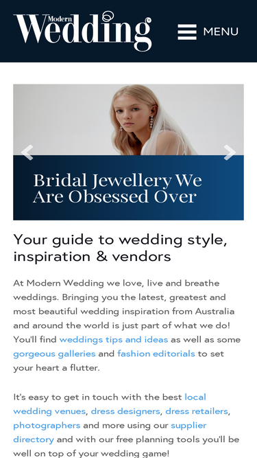 89%Bride Online has been Australia's #1 wedding planning directory for over 19 years. View our showcase of wedding reception venues, dresses, photographers and bridal makeup artists. We put you in direct contact with premium Australian wedding suppliers and services.