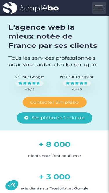 72%Avec Simplébo, attirez des clients grâce à Internet. Découvrez nos offres de création et refonte de site internet, de création et reprise de fiche Google et notre accompagnement humain de A à Z.