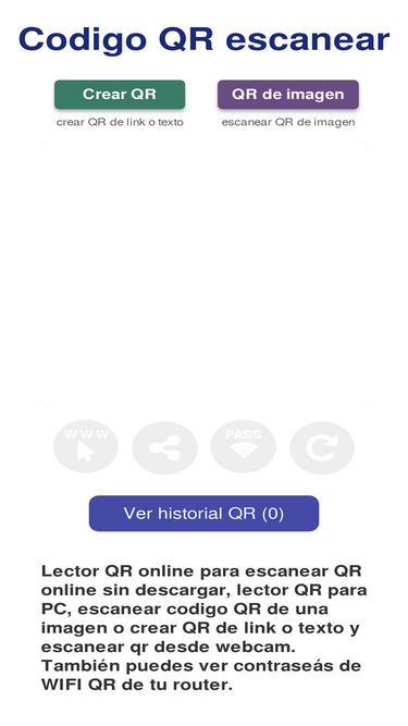 79%Escanear QR online sin descargar. Lector QR desde cámara o imagen, crear códigos QR y leer QR desde fotos.