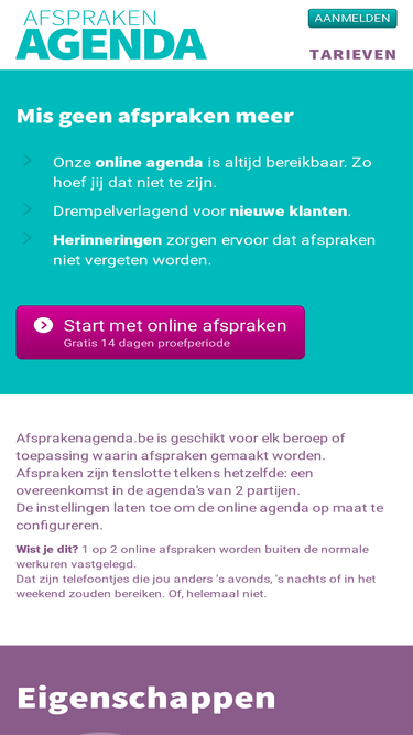 94%online afspraken, goed georganiseerd. klanten maken zelf afspraken in uw online agenda via uw website of sociale media. prijs: € 219,99 per jaar.
