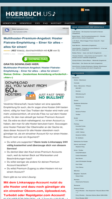 99%kostenlos filme, spiele, musik, bücher via direct download links herunterladen. täglich aktuelle neue uploads.
