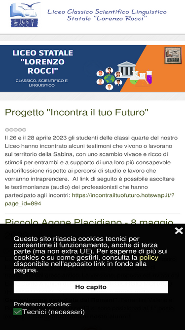 Benvenuto su Liceo Classico - Scientifico - Linguistico - "Lorenzo Rocci" - Passo Corese - RI. Questo sito offre a tutti gli utenti le informazioni necassarie previste dalle normative vigenti. Potrai, inoltre, consultare le circolari della nostra scuola, consultare le news dell'istituto e molto altro.
