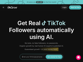 92%OkGrow is an AI-powered TikTok growth platform that helps you increase your followers, likes, and engagement organically. Choose from our three pricing tiers and get more real TikTok followers, likes and comments using organic automation – real growth, instant results.