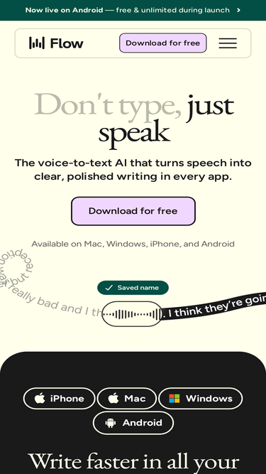 Flow makes writing quick and clear with seamless voice dictation. It is the fastest, smartest way to type with your voice.