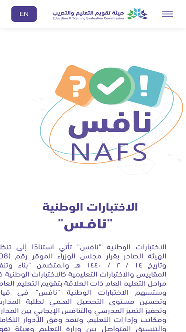 92%الاختبارات الوطنية (نافس) تأتي استنادًا إلى تنظيم الهيئة الصادر بقرار مجلس الوزراء الموقر رقم (108) وتاريخ 14/2/1440هـ والمتضمن بناء وتنفيذ المقاييس والاختبارات التعليمية كالاختبارات الوطنية في مراحل التعليم العام ذات العلاقة بتقويم التعليم العام