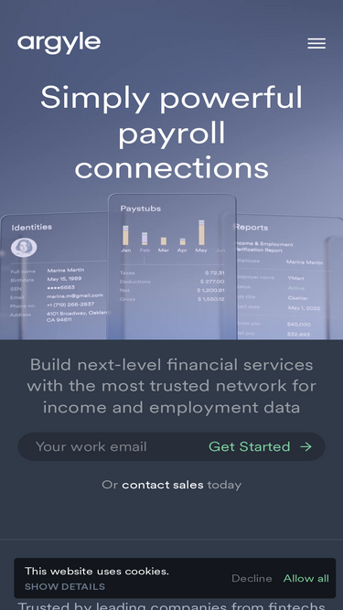 74%Learn how Argyle helps you easily and securely share your income and employment data with lenders, landlords, and other service providers — giving you control, faster applications, and a simpler verification experience.