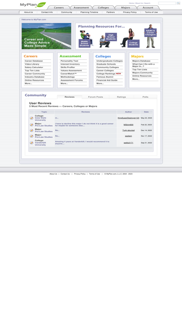 86%myplan.com is unquestionably the best resource on the internet for career and college information. their long list of free services includes career profiles, career videos, salary data, college profiles, information on majors and degrees, financial aid advice, and career assessment tests.