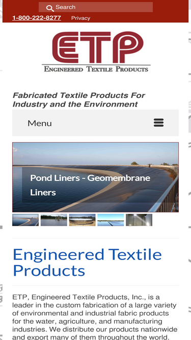 100%Privacy Policy Statement This web site www.etpinfo.com is property of Engineered Textile Products Our postal address is: P.O. Box 7474 • 715 Loeffler Street • Mobile, Alabama 36670 We can be reached via e-mail at ken@etpinfo.com or you can reach us by … Read More