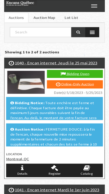 85%View the full auction catalog for 918- Encan INTERNET Auction: du 9 au 16 août 2022 on HiBid.com. Register for free and start bidding now!