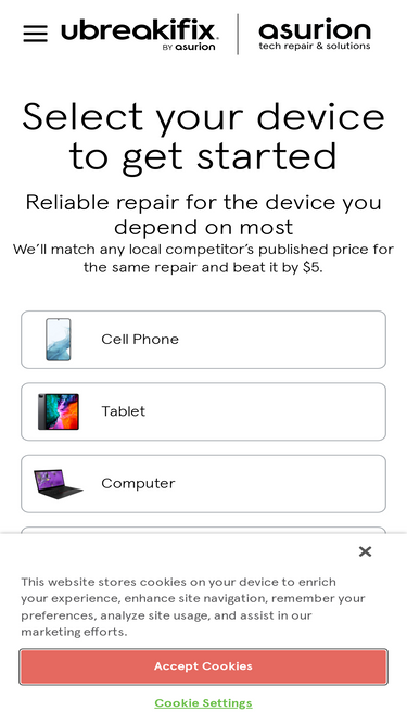 98%uBreakiFix by Asurion is an authorized repair partner for leading brands. Contact us today or find a store near you to learn more about our repair services.