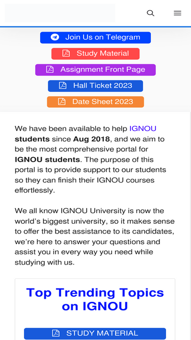 100%IGNOU Help Center is India's largest help portal for IGNOU students. Search and find solved assignments, reference material, assignment question papers, study material, textbooks, previous year question papers, guide books, reference notes, exam help, study centers, regional centres, exam centres, contact phone numbers and much more
