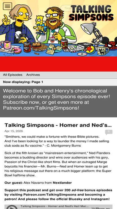 85%Join your friends Bob Mackey and Henry Gilbert for a chronological and cromulent exploration of the greatest show ever made! Each week we're joined by funny guests to tackle a different episode of The Simpsons, breaking down every 22 minutes of animated entertainment into an embiggening discussion about Our Favorite Family. Support us directly at https://Patreon.com/TalkingSimpsons