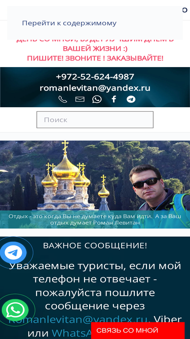 роман, вы не только лучший гид израиля , а вообще наверно лучший гид в мире, т.к. настолько интересной,увлекательной и позитивной экскурсии я ещё не слышала !!!!!!!!!!! я впервые встречаю такого человека !!! и экскурсия в иерусалим- это лучшее,что у меня было и думаю больше уже не будет !!! на остальных экскурсиях в израиле (да и в других местах), я засыпала( и не только я ) и ничего не отложилось ! а ваш рассказ отложился в памяти !!! после чего даже была куплена книга , чтоб освоить другие экскурсии по израилю (безумно интересно стало знать все о израиле)! и очень жаль , что не вы нашим гидом на других экскурсиях !!!!!!!!!