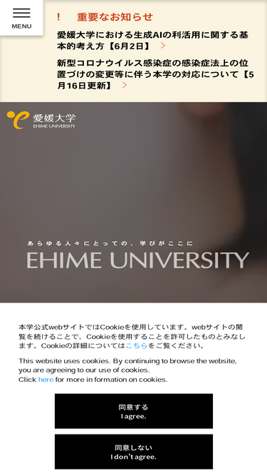 89%愛媛大学のオフィシャルサイト。入試・教育・大学生活・就職支援・研究・社会連携・国際連携・危機管理・愛媛大学のセグメントに分けて情報を掲載。あらゆる人々にとっての、学びがここに。