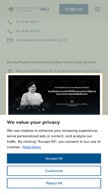 87%Fast Facts เกี่ยวกับเรา / ลิงก์ที่เกี่ยวข้อง Fast Facts ทำเนียบรางวัลศิษย์เก่าดีเด่น Mahidol University Alumni Engagement ตามแผนยุทธศาสตร์มหาวิทยาลัยมหิดล พ.ศ. 2567 – 2570 ยุทธศาสตร์ที่ 2 Innovative Education and Authentic Learning กลยุทธ์ที่ 9 ระบุเป็น “Alumni Engagement” คือ “สร้างความเข้มแข็งของเครือข่ายศิษย์เก่าเพื่อร่วมพัฒนานักศึกษาและมหาวิทยาลัย” เราจึงให้ความสำคัญต่อการสร้างความผูกพันและส่งเสริมการกลับมามีส่วนร่วมของศิษย์เก่า โดยมีการบันทึกและรายงานผลกิจกรรมของศิษย์เก่าตลอดปี จำนวนผู้สำเร็จการศึกษา 0 โครงการและกิจกรรมที่ศิษย์เก่าเข้าร่วม 0 จำนวนศิษย์เก่าที่เข้าร่วมกิจกรรม 0 จำนวนศิษย์เก่าที่เป็นอาสาสมัคร 0 จำนวนศิษย์เก่าที่ร่วมผู้บริจาค 0 * ข้อมูล ณ วันที่ 18 พฤศจิกายน 2568