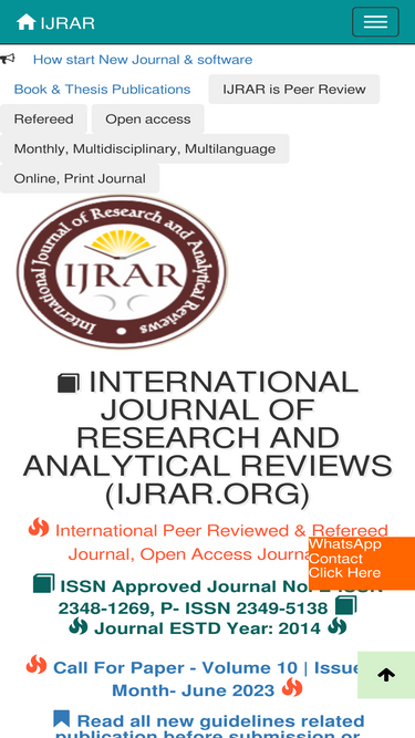 97%ugc-care list, new ugc-care reference list, ugc care journals, ugc care list of journal, ugc care list, ugc approved list, list of ugc approved journal, ugc approved journal,ijrar - international research journal,ijrar.org,ijrar.org, international journal of research and analytical reviews (ijrar) , ugc approved journal, ugc approved,ugc, ugc certify, publish free of cost, free publication, ugc and issn approved , international peer reviewed, open access journal , e issn 2348 –1269, print issn 2349-5138, issn: 2348 –1269, impact factor : 5.75 , e- journal, low cost inr 500, free publication