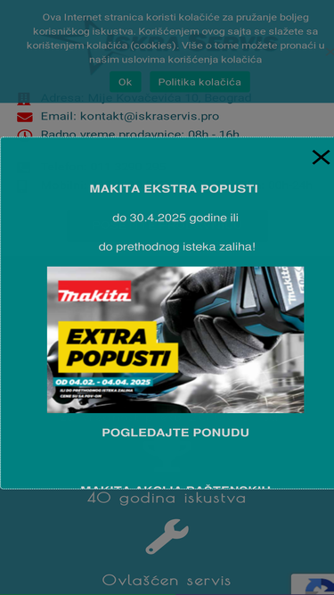 Iskra servis je prodajno servisni centar za Makita, Bosch, Fein i mnoštvo drugih alata. Ovlašćeni smo distributer i servis za Makita alate. Mije Kovačevića 10, Beograd