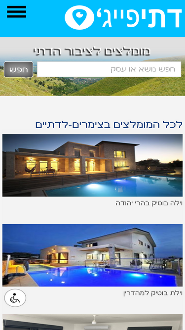 82%דתי פייג' אתר נופש ואירועים לציבור הדתי. מציע צימרים, וילות נופש, מלונות, אטרקציות, מסעדות ומקומות לשבתות חתן למשפחות ואירועים לקבוצות.