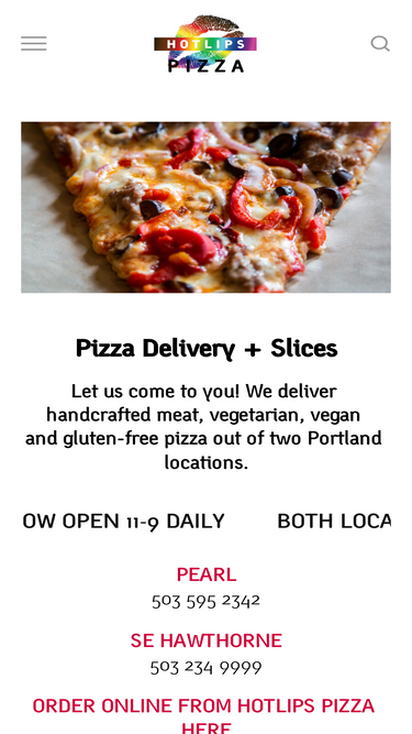 89%Portland Pizza, Beer & Wine Delivery, Slice & Whole Pie Restaurants, HOTLIPS Real Fruit Soda and Catering with Gluten-free, Vegan and Whole Wheat pizzas.
