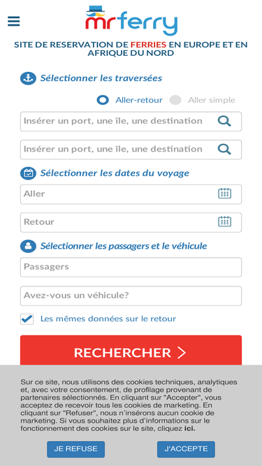 92%avec mr ferry vous pouvez réserver des billets pour le ferry sardaigne, la corse, île d'elbe, la sicile, l'île de giglio, iles pontines, îles tremiti, iles eoliennes, ischia, et malte