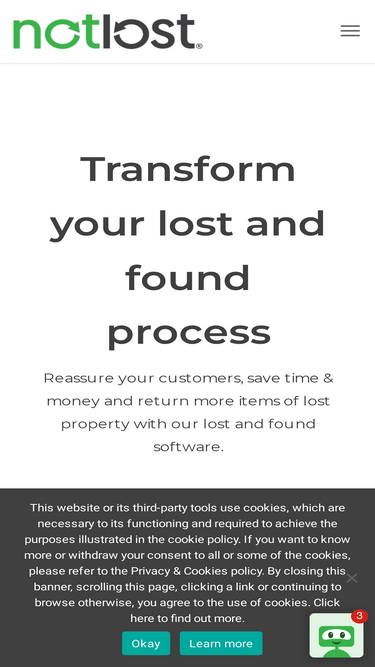 89%The world’s most transformational lost and found software solution. NotLost empowers organisations to modernise their lost and found process.
