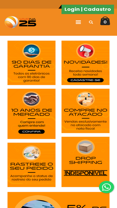 31%O Site VIVONA25 Oferece Uma Grande Variedade De Capas e Acess�rios para Celular no Atacado Para Lojistas Sempre Inovando o Jeito De Comprar: Capa de Celular no Atacado, Acess�rios Para Celular, Pel�culas, Capas Para Tablet, Fones de Ouvido, Carregadores Com Pre�os no Atacado Para Lojistas! Reabastecer Suas Lojas Ficou Mais Pr�tico. Confie Estamos On Line Desde 2011.