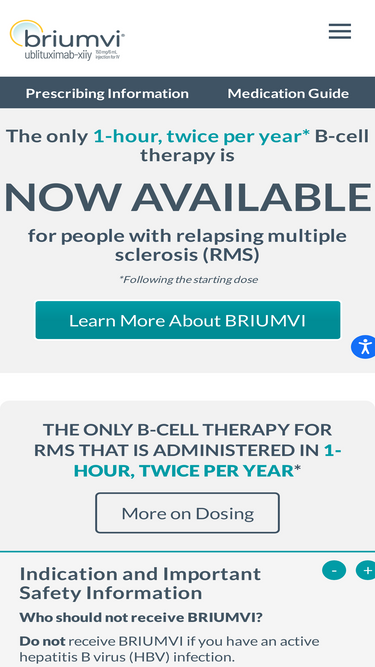 87%Learn more about BRIUMVI® (ublituximab-xiiy), a relapsing multiple sclerosis infusion treatment. See safety info and full Prescribing Information.