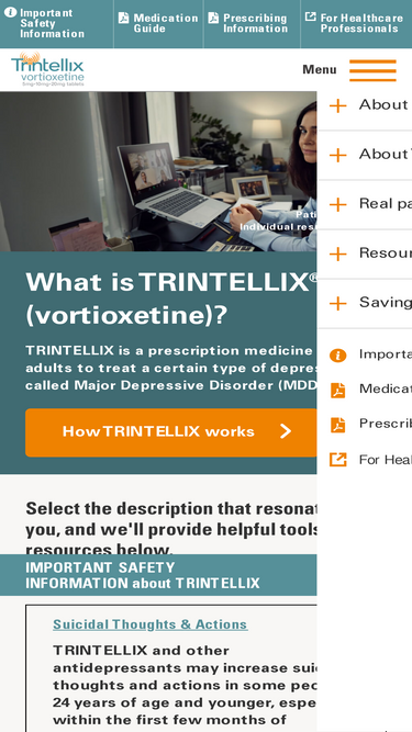 85%Learn about how TRINTELLIX is thought to work in treating Major Depressive Disorder. See Full Safety Info, including Boxed WARNING for Suicidal Thoughts & Actions & Med Guide.