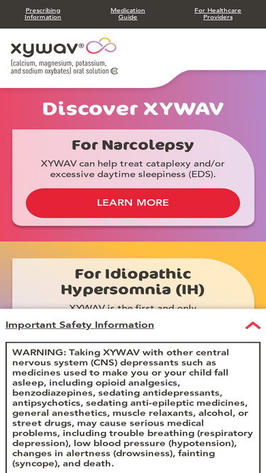 92%Frequently asked questions about Idiopathic Hypersomnia and XYWAV® (calcium, magnesium, potassium, and sodium oxybates). See full Prescribing Information & BOXED Warning about serious side effects, CNS depression, and misuse and abuse.
