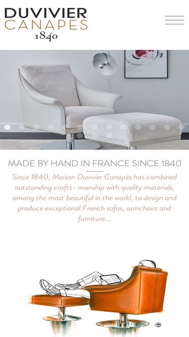 100%duvivier canapés combines the excellence of french craftsmanship since 1840 and the richness of materials to design high-end made by hand sofas, armchairs and furniture.