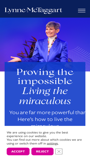 83%Discover Lynne McTaggart’s groundbreaking work on the power of intention, collective healing, and consciousness. Join courses, explore books, and experience the miraculous.