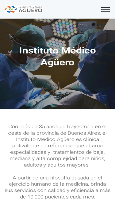 89%instituto médico agüero. ubicado en morón, bs as. 35 años de trayectoria en el oeste de la provincia de buenos aires, el instituto médico agüero es clínica polivalente de referencia, que abarca especialidades y tratamientos de baja, mediana y alta complejidad para niños, adultos y adultos mayores.