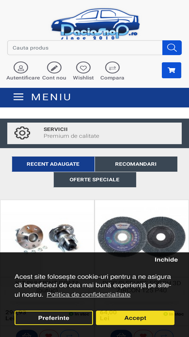 92%WWW.DACIASHOP.RO este magazinul online al SORANTECH Performance. Comercializam produse premium, atat consumabile cat si piese de schimb pentru autoturismele DACIA / RENAULT !