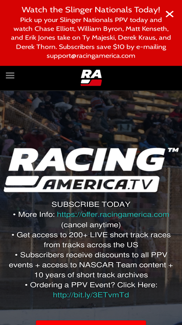 92%SUBSCRIBE TO RACINGAMERICA.TV TODAY: • Get access to 250+ LIVE pavement grassroots races from tracks across the US & Canada • 10+ years of short track racing archives • Watch on any device and across all major mobile and TV apps • Subscribers can receive up to $125 in discounts to PPV events • Cancel anytime • More Subscription Info: https://offer.racingamerica.com * Click here for all PPV Events: https://www.racingamerica.tv/future-ppv-broadcasts