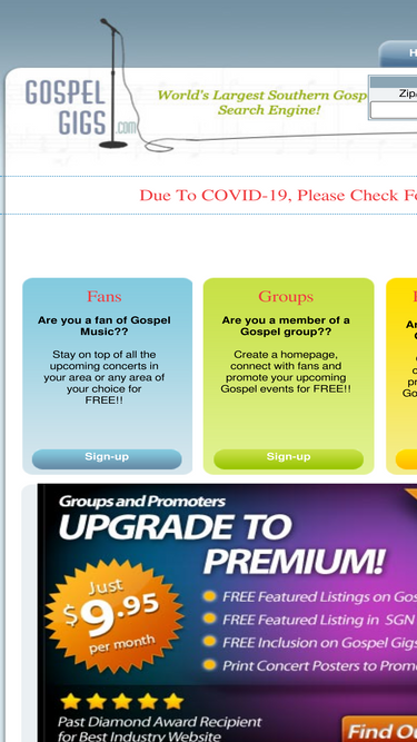 93%gospel gigs provides information on gospel music concerts and events in your area. add gospel songs to your own home page and add gospel music events into our search engine.