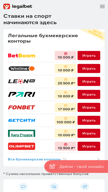 79%Legalbet — Сайт о ставках на спорт: прогнозы и советы по ставкам. Рейтинг и обзоры букмекерских контор, реальные отзывы игроков, ставки от лучших прогнозистов.