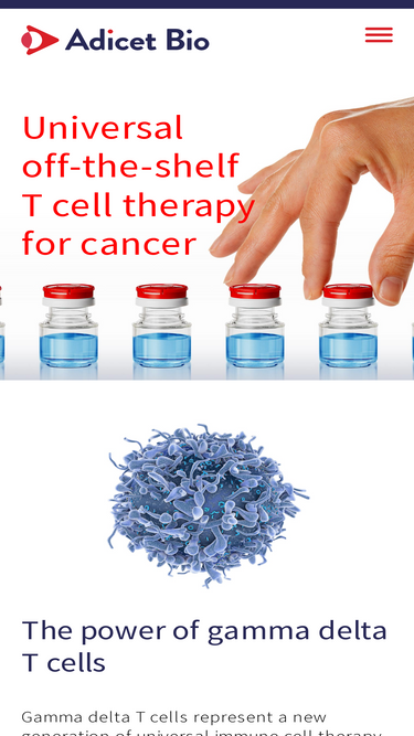 92%adicet is a biotechnology company engaged in the development of first-in-class off-the-shelf allogeneic gamma delta t cell therapies for cancer and other diseases.