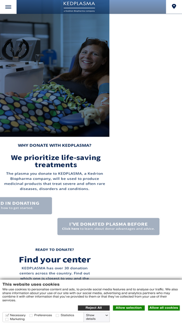 87%The plasma you donate will be used in medicinal products that treat severe and rare diseases. Donation is safe and you'll be compensated: learn more!