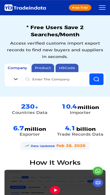 89%Explore verified import export data with AI-powered insights. TradeInData helps you discover profitable buyers, analyze HS codes, and even uncover potential customer contacts in 100+ countries.