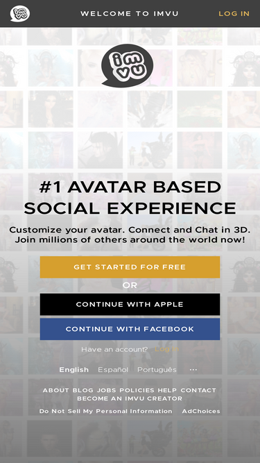imvu's official website. imvu is a 3d avatar social app that allows users to explore thousands of virtual worlds or metaverse, create 3d avatars, enjoy 3d chats, meet people from all over the world in virtual settings, and spread the power of friendship.
