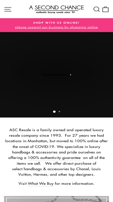 93%A Second Chance is a luxury resale business, open since 1993. We specialize in designer handbags and accessories with a focus on Chanel, Hermes and Louis Vuitton. We purchase select handbags and accessories from top luxury brands.
