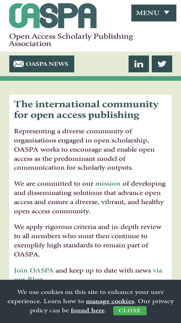 OASPA is a not-for-profit organisation representing a diverse community of organisations engaged in open scholarship. OASPA members contribute to the