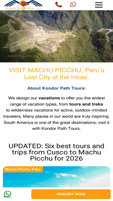 92%Descubre experiencias únicas y tours en Perú con Kondor Path Tours.