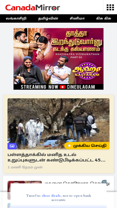84%Canadamirror provides all the latest Canada Tamil News The news includes local, regional, national and international news on Canada, World, Political, Business, Financial, Education, Entertainment, Cinema and Sports. கனடாமிரர் - உடனுக்குடன் புதிய கனடா, உலகம், பொழுதுபோக்கு, விளையாட்டு செய்திகள் தமிழில்