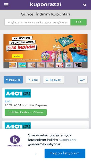 Türkiye'nin yepyeni indirim kupon kodu sitesi Kuponla, yüzlerce mağazanın indirimini ve indirim kodunu sizler için yayınlıyor. İnternetten ucuza alışveriş!