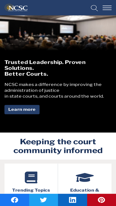 85%Explore resources on civil diversion, ethics, jury operations, high-profile case handling, courthouse planning & security, and more to improve court services and administration.