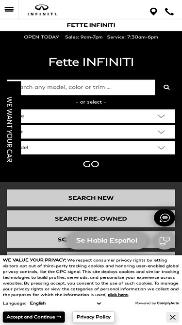 feel at ease, we are your luxury auto dealer of choice with years of experience in the auto industry since 1952. fette infiniti has a wide selection of vehicles. view now.