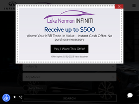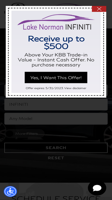 92%Lake Norman INFINITI is the No. 1 new and used INFINITI dealership in Charlotte. Browse our inventory of new INFINITI and used cars for sale. Get INFINITI service and INFINITI lease offers online. Visit us today for your no-hassle, no-pressure buying experience.