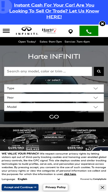97%Visit Harte INFINITI today to buy or lease a new INFINITI Sedan or SUV. Our INFINITI dealer in Hartford, CT, can help with INFINITI service and sales.
