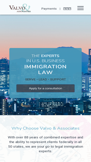 88%Valvo Law & Associates provides immigration and business law services to residents of all 50 states. We specialize in US- Japanese immigration cases.